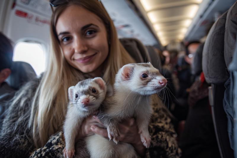Taking your guinea pig, ferret, or cat out of the bag is fine—just keep them on your lap. Handing your ferret to your seatmate without warning may not be in the spirit of shared skies.