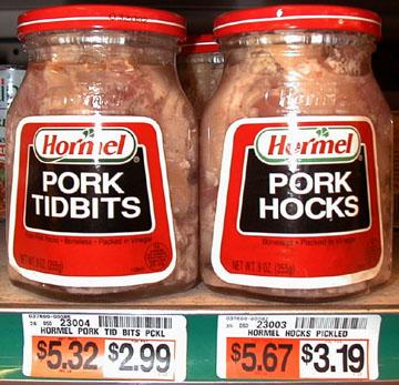 Pork Tidbits and Pork Hocks: pieces of pork swimming in some liquid. I don’t know if these are still sold but this may be one reason why there’s nostalgia for the 1990s. Was it worth paying $0.20 more for hocks?
